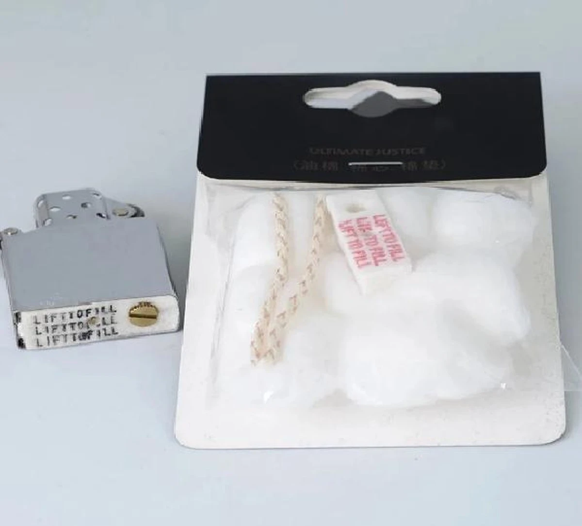 | Verpakkingsinhoud | 1 x lont, katoen en onder sluiting voor navul-gedeelte van bijvoorbeeld een zippo aansteker |