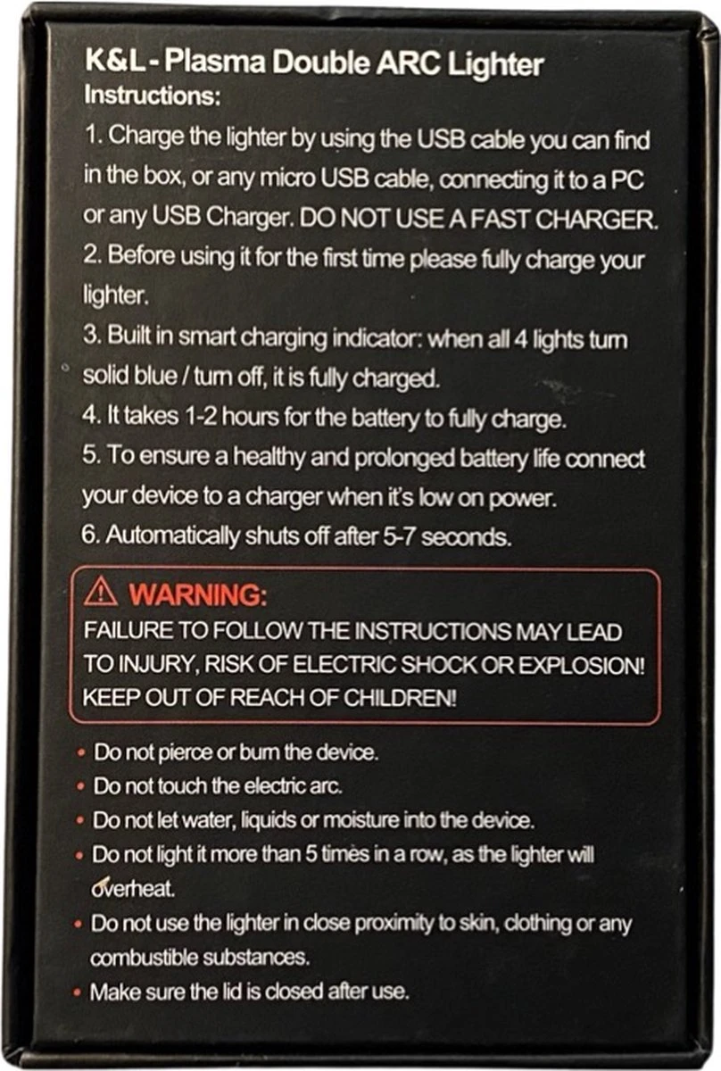 Deze Plasma aansteker is oplaadbaar en kan tot 300 ontstekingen per lading gebruikt worden. Laad hem op met de bijgeleverde USB-kabel, in slechts 30 minuten is het weer klaar voor gebruik.
