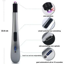 Oplaadbare Lange Elektrische Aansteker – Zilver – Duurzame Plasma Aansteker – Inclusief Cadeauverpakking – BBQ – Kaarsen
