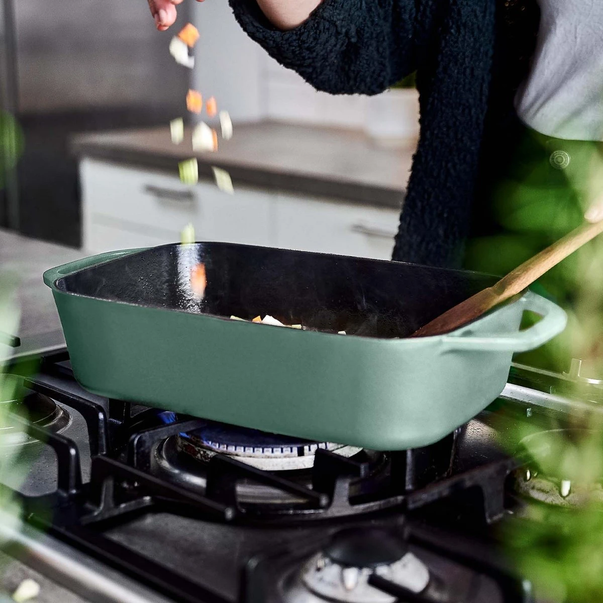 Of het nu gaat om hartige lasagne, romige kaasmacaroni of een vegan groenteschotel – de meeste ovengerechten beginnen op het fornuis. Dat moet jouw ovenschaal dus ook kunnen. In de gietijzeren ovenschaal kun je voedsel en groenten aanbraden en sauzen bereiden. En dan, dankzij de optimale warmteverdeling en energie-efficiëntie van gietijzer, bak je elk gerecht in de oven tot in de perfectie af.